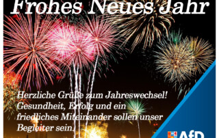 Liebe Mitglieder, liebe Förderer, liebe Freunde, gerade die Weihnachtszeit ermöglicht einen Rückblick auf das vergangene Jahr, um kurz inne zu halten und uns zu besinnen, was unseren Zusammenhalt als AfD ausmacht. Vielen Dank für euren unermüdlichen Einsatz, eure Unterstützung und euer Engagement im vergangenen Jahr. Ohne euch wäre unsere Arbeit nicht möglich gewesen. Wir wünschen [...]