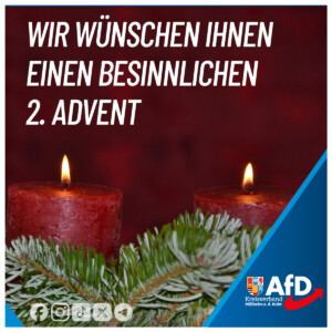 Wir wünschen Ihnen einen besinnlichen 2. Advent Von frankko|2025-12-30T15:10:46+01:007. Dezember 2025|Aktuelles|0 Kommentare Diesen Beitrag verbreiten FacebookXLinkedInPinterestE-Mail Ähnliche Beiträge Einen schönen Nikolaus Gallerie Einen schönen Nikolaus Einen besinnlichen 1. Advent Gallerie Einen besinnlichen 1. Advent Brandmauer erstickt jegliche nötige Veränderung Gallerie Brandmauer erstickt jegliche nötige Veränderung Oktoberfest 2025 Gallerie Oktoberfest 2025 Kreisparteitag des Kreisverbandes Mülheim Ruhr am 21.09.2025 Gallerie Kreisparteitag des Kreisverbandes Mülheim Ruhr am 21.09.2025 Hinterlasse einen Kommentar Antwort abbrechenKommentar Meinen Namen, E-Mail und Website in diesem Browser speichern, bis ich wieder kommentiere.